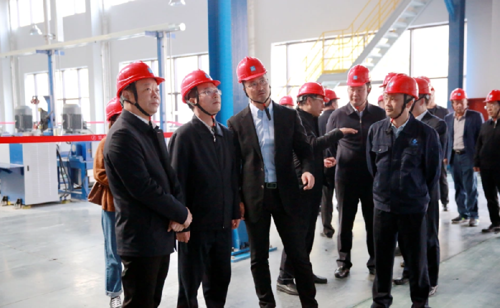 11月18日,泰州市委常委、常務(wù)副市長劉浩帶領(lǐng)發(fā)改委、工信局、自然資源規(guī)劃局、商務(wù)局主要負責(zé)人赴我司調(diào)研興達年產(chǎn)35萬噸高性能子午線鋼簾線項目建設(shè)情況。泰州市政府副秘書長、辦公室主任劉江明,興化市委常委、常務(wù)副市長常冬海,市委常委、戴南鎮(zhèn)黨委書記夏愛東,興化市政府辦分管負責(zé)人、發(fā)改委、